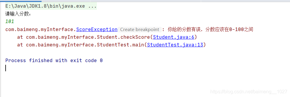 throw new ScoreException("你给的分数有误,分数应该在0-100之间");//如果数据有误就会走异常