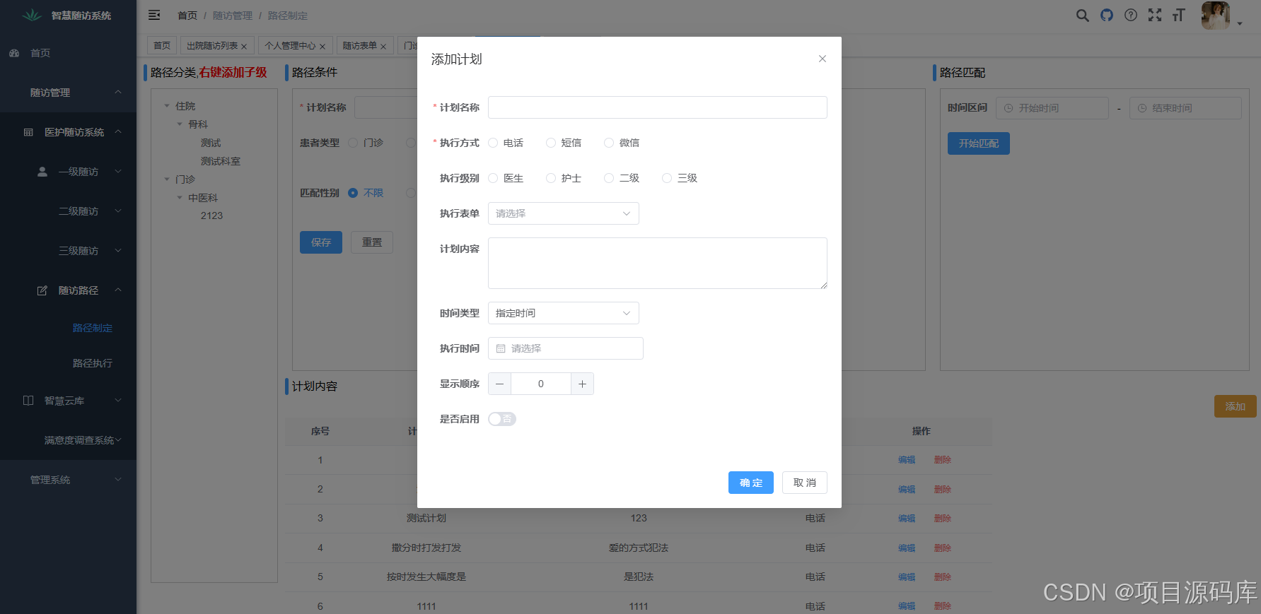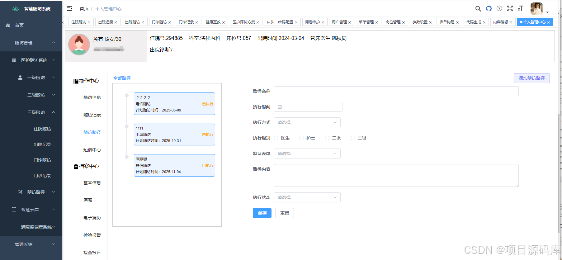 8、随访提醒:到设定的随访时间,系统自动提醒管理人员及时随访。