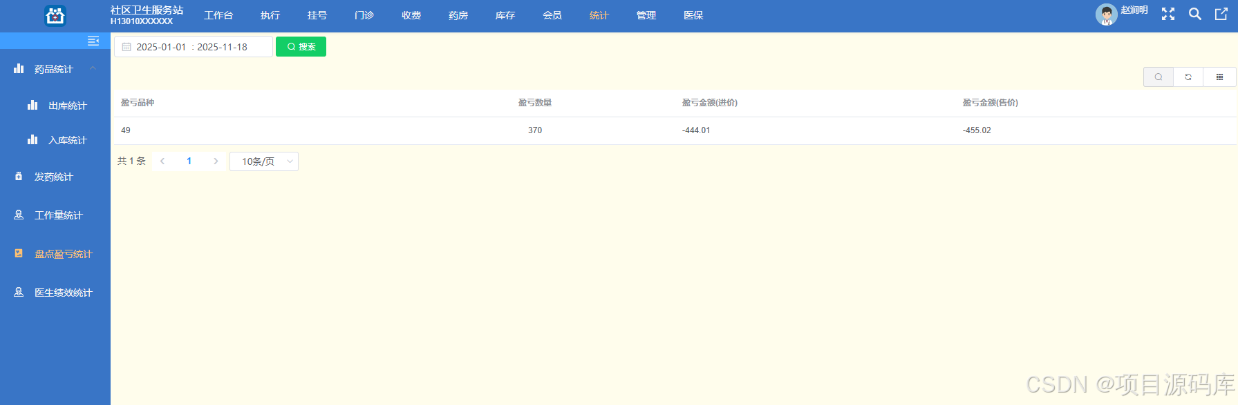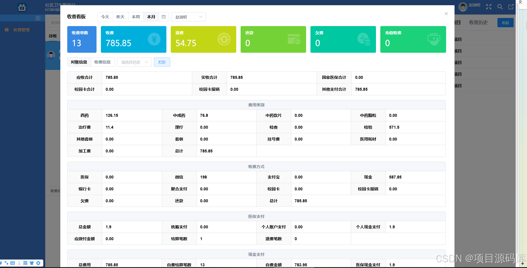 包括库存进销存查询统计、科室医生工作量统计、应收统计、收费日报、医保对账等。