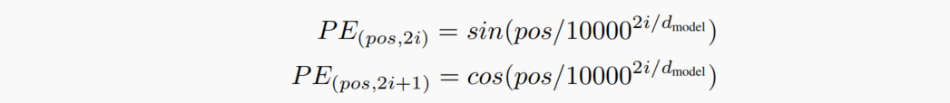 这里,我们使用固定的位置编码。具体地,使用不同频率的sin和cos函数来进行位置编码,如下所示: