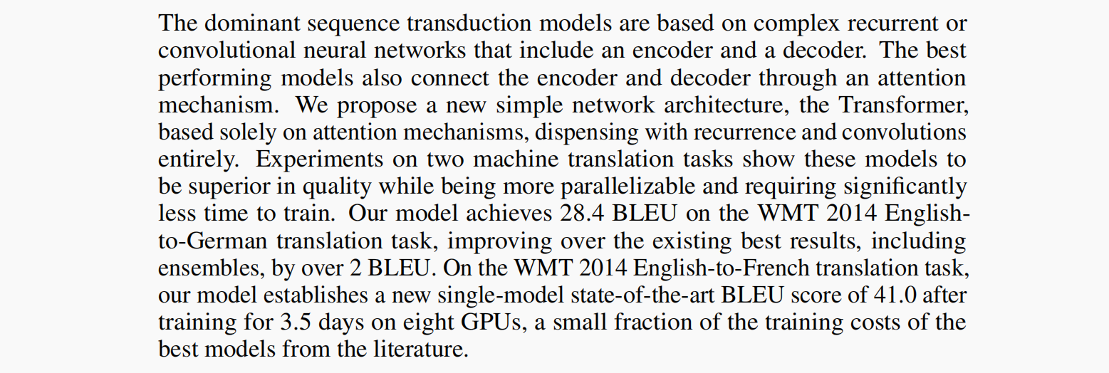4)论文摘要:提出纯注意力序列模型 Transformer,训练可并行,长依赖一步到达,在 WMT14 英德/英法翻译任务上刷新 BLEU 并奠定后续大模型基础。