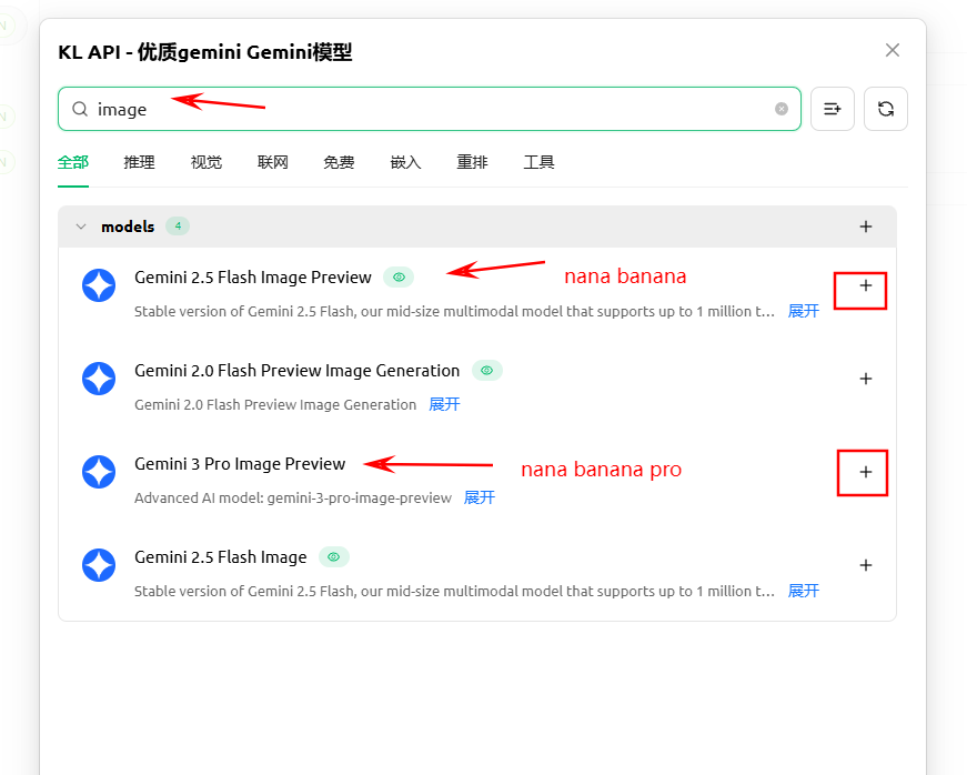 4. 在cherry studio中配置对应模型(gemini-2.5-flash-image-preview是第一代banana,gemini-3-pro-image-preview是最新的banana pro)
