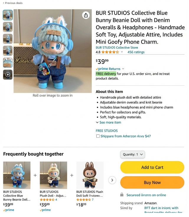 为这个娃娃创建一个网店页面,风格类似于亚马逊