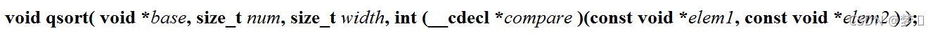 这里因为不知道所排列的数组是什么类型,数组的大小是多少,每个元素的大小,所以这里的参数类型我们直接采用qsort函数的参数样式即可