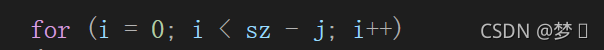 就我们目前的代码,sz的数值为10,每一趟冒泡排序都可以排序好一个数字,所以下次循环的元素个数要-1,把排序好的那个数字剔除掉,将剩余的元素进行下一次冒泡排序