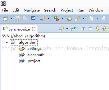 ②在弹出的“Team Synchronizing”页面中,将左边src目录下的src开头的文件及文件夹全部选择“提交”,留下“.setting”文件夹,“.classpath”文件以及“.project”文件;
