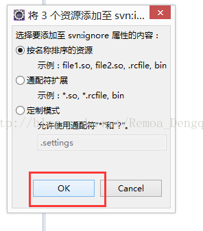 ③“.setting”文件夹,“.classpath”文件以及“.project”文件右键选择“添加至SVN :ignore”;