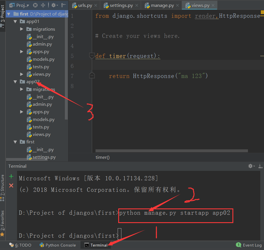 第二步: 在原来的urls中书写代码: path('app01',include('app01.urls)