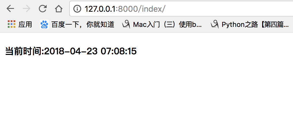 <!DOCTYPE html> <html lang="en"> <head> <meta charset="UTF-8"> <title>Title</title> </head> <body> <h4>当前时间:{{ ctime }}</h4> </body> </html>