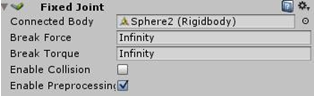 在 Unity3D 基本关节中,固定关节起到的往往是组装的功能,利用固定关节可以 拼接刚体。固定关节将两个刚体束缚在一起,使两者之间的相对位置保持不变,永远不 会变化,在很多开发情况是非常有用的一个关节。