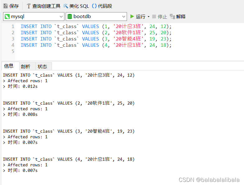 INSERT INTO `t_class` VALUES (2, '20软件1班', 25, 20);
