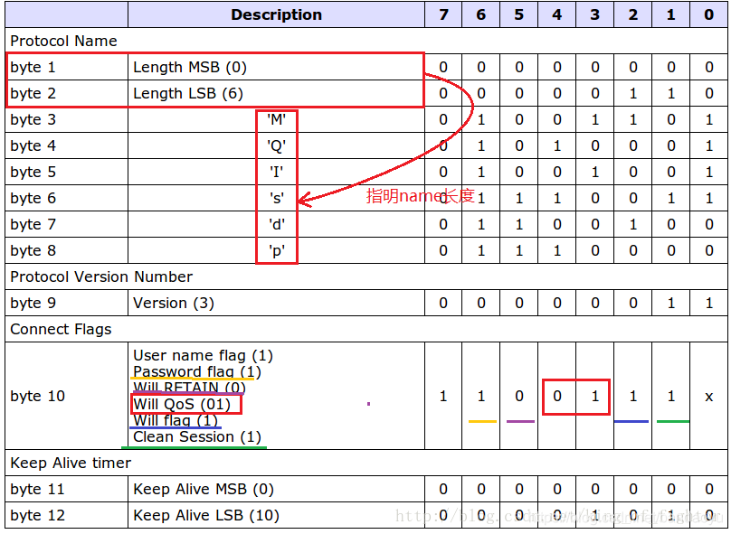 通过设置协议帧中的“可变头部”中的Qos位指定