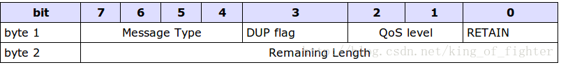 | Message type | UDP flag | Qos level | RETAIN | Remaining Length | ||||