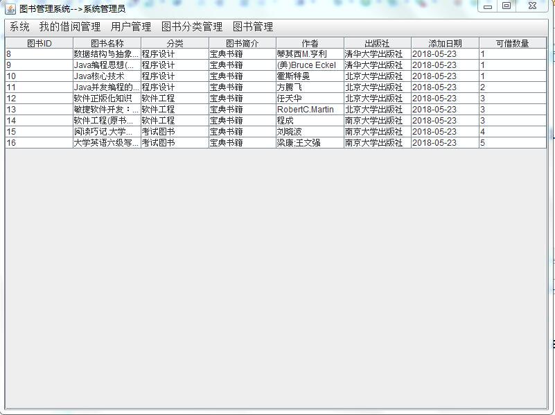 Java编写的图书管理系统,swing版本。整个系统分两个角色:系统管理员和普通用户。详细代码联系Q:2497737951