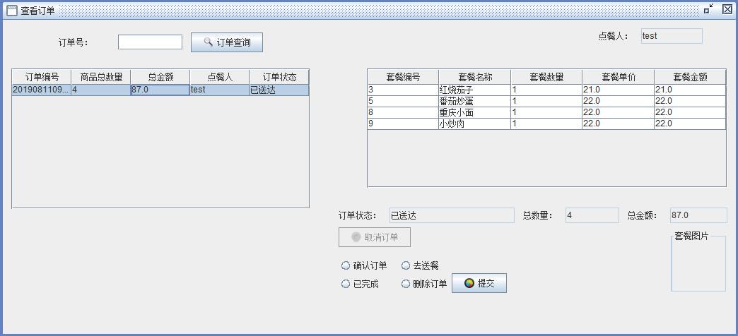 7 订单维护:订单维护就是对订单的状态进行变更:包括以下4中状态:确认订单、去送餐、已经完成、删除订单
