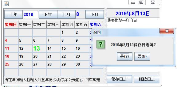 万能日历用Java语言编写,是一个简单的窗体程序,采用swing框架编写,系统涉及到文件、UI、事件等操作。系统的主要功能包括: