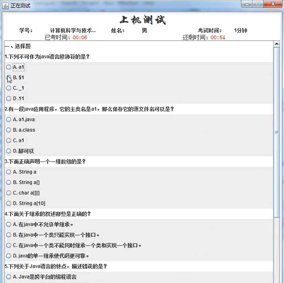 5 退出系统。学生点击退出按钮,退出整个应用程序。