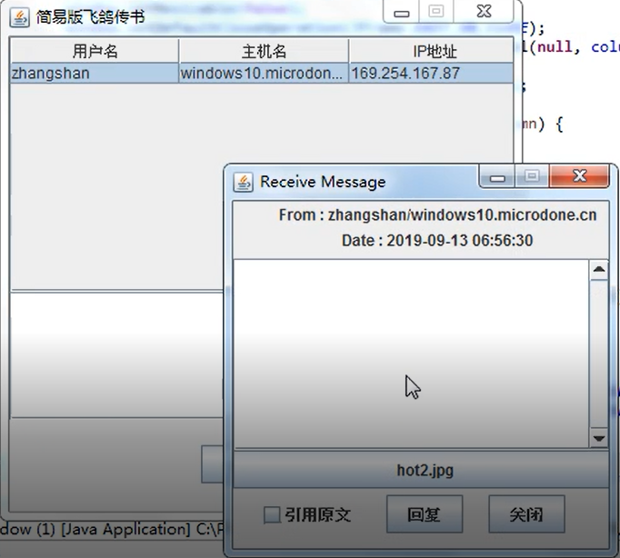 文章介绍了使用Java语言和Swing框架开发的飞鸽传书程序,该程序具备简洁界面和完整源码。主要功能包括发送文字信息和文件,接收到文件时会弹出提醒并允许下载。程序基于TCP服务进行文件传输,实现了从接收文件名到实际文件传输的流程。开发环境可选用Eclipse或IDEA,运行便捷。