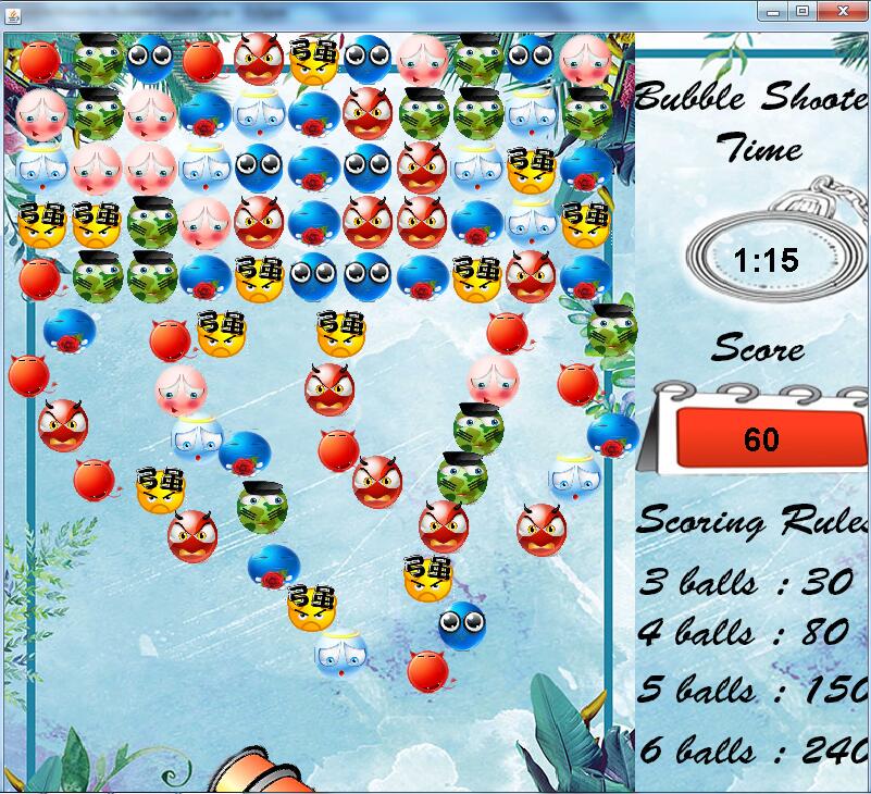 《泡泡射击》(Bubble Shooter)是一款类似泡泡龙的消除类益智休闲游戏,游戏激烈刺激,画面精美,在游戏中击中上方的球,组合3个或更多相同的球,使附在球上的其它色球下落,清除所有小球才能过关,花费的时间越短,步骤越少得到的分数就越多。