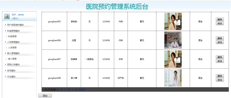 在这个模块中,系统管理员可以对医院的科室进行添加、修改和删除等操作。