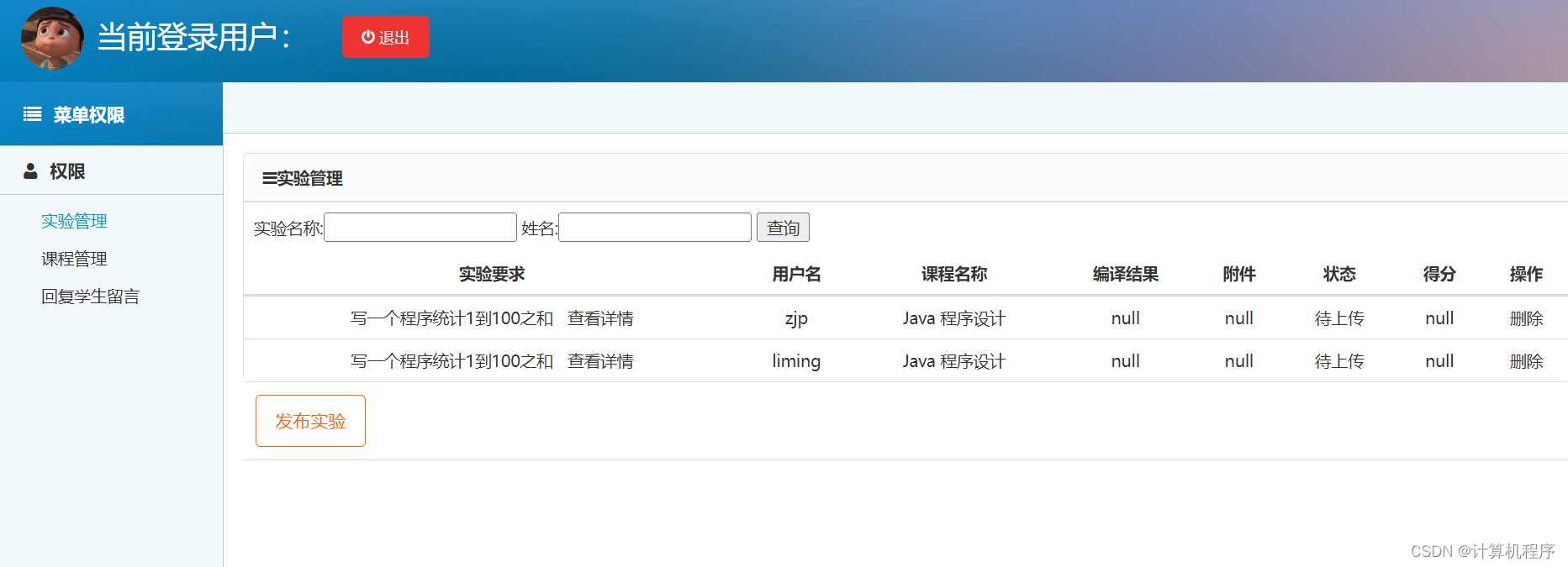 8月份由于公司的事情太多,基本上没有更新博客信息。今天稍微空了点,继续为为大家介绍Java web项目,今天要介绍的是一个Java web编写的学生作业管理系统。 学生作业管理系统有三种用户类型:学生、老师、系统管理员。学生的主要功能包括:查看老师的作业,在线提交作业和相关附件、向老师提问。老师的主要功能为:发布作业、查看学生作业提交情况、发布课程信息、回复学生的各种提问和答疑。系统管理员的功能为:用户管理、班级管理,管理员的信息维护对日常的信息进行增删改查相关操作。目前系统功能已经很全面,后续会进一步完善。整个系统界面漂亮,有完整得源码,希望大家可以喜欢。喜欢的帮忙点赞和关注。一起编程、一起进步。