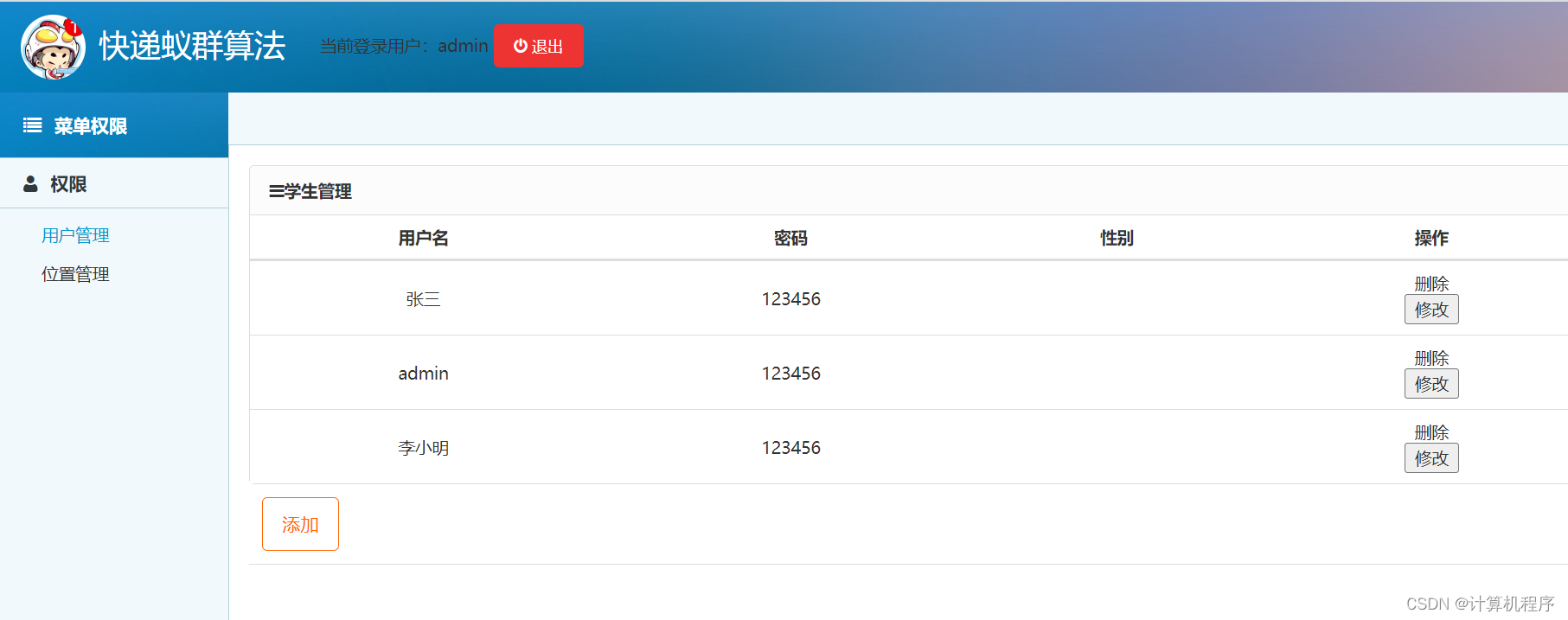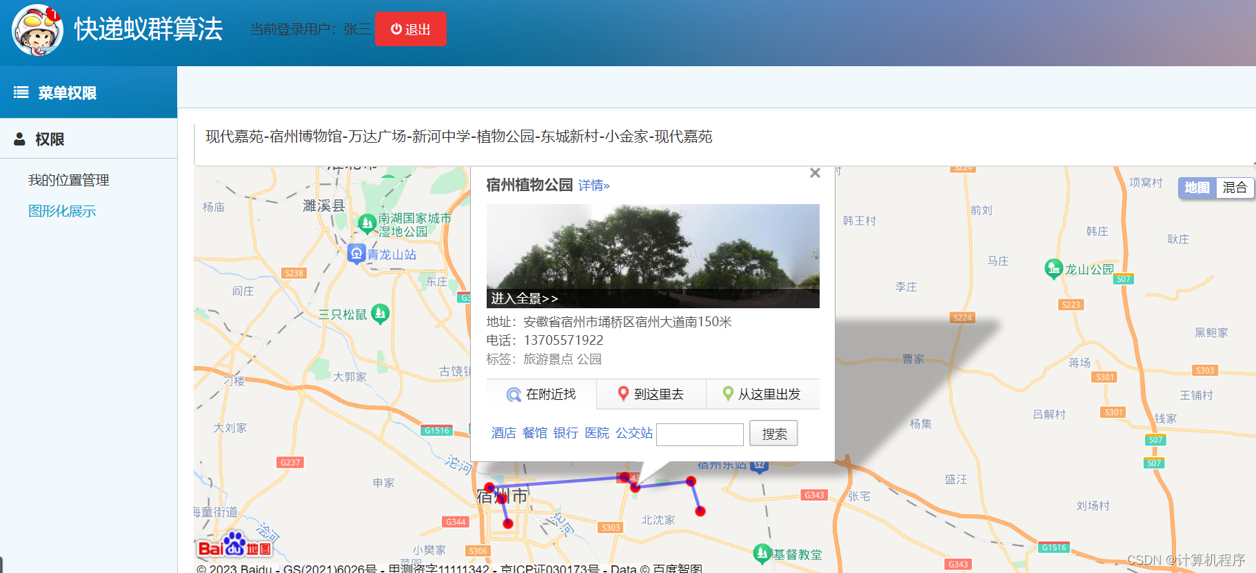 在2023年3月份曾经写过一篇博客,介绍图形化蚁群算法的具体实现。博客地址在****可以看到。前端时间应一个朋友的要求,对蚁群算法的实现用java web来进行实现,并且通过百度地图来进行展示最终的最优路径。经过半个月的开发,我完成了java web蚁群算法,并且通过这篇博客与大家分享。目前java web蚁群算法系统功能已经很全面,后续会进一步完善。整个系统界面漂亮,有完整得源码,希望大家可以喜欢。喜欢的帮忙点赞和关注。一起编程、一起进步。