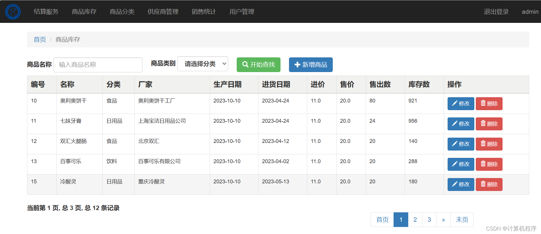 前段时间各种各样的事情太忙,优快云博客停止有很长一段时间了。今天为大家分享一个基于SSM框架的的超市管理系统510。本次介绍的SSM超市管理系统系统涉及到数据库技术、UI技术、多线程技术等、web开发,是一个实战性很强的项目。传统的人工管理方式存在效率低下、易出错等问题,难以满足超市大规模、高效率的管理需求。超市管理系统的出现可以有效解决这些问题,通过自动化和智能化的管理方式提高管理效率。本次介绍的超市管理系统分职员和系统管理员两个角色,职员用户具备的功能包括:注册、登陆、查看库存、查看商品分类、商品销售、销售统计等功能。系统管理员具备的功能包括:登陆、用户管理、商品分类管理、商品管理、库存管理、供应商管理、销售统计等功能。整个项目有完整得源码,希望大家可以喜欢。通过实战项目,喜欢上编程,提高编程水平,一起加油!