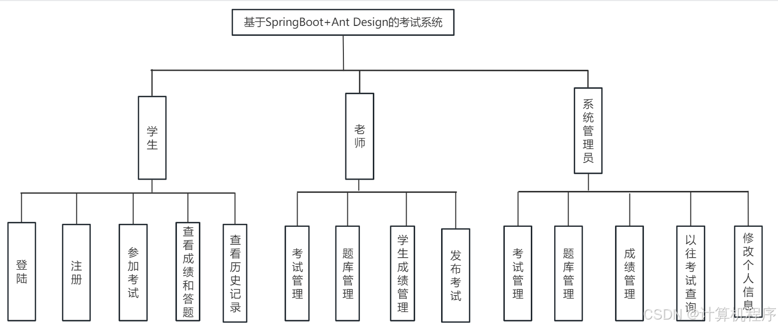 基于springboot+Ant Design考试系统的各个模块的功能如下图所示: