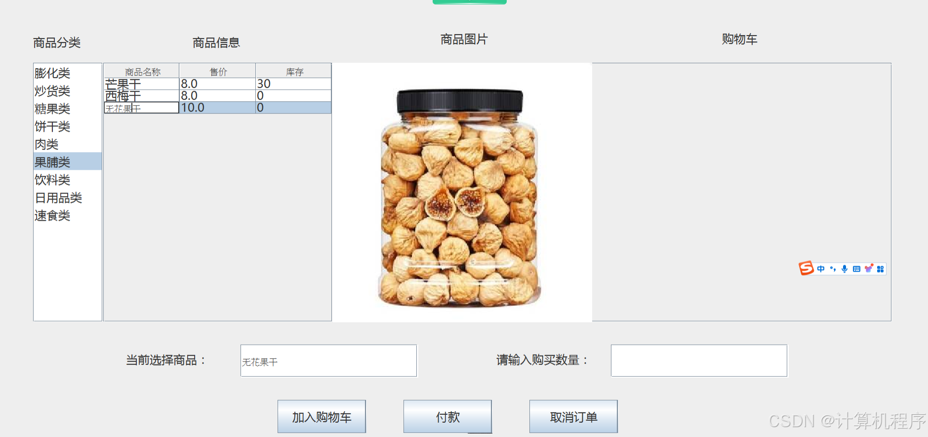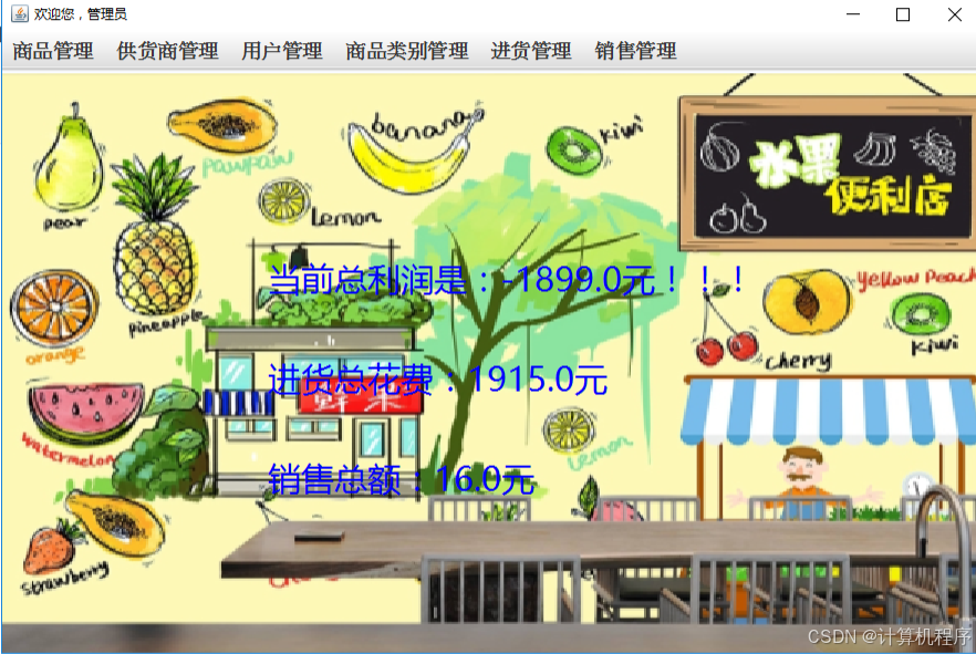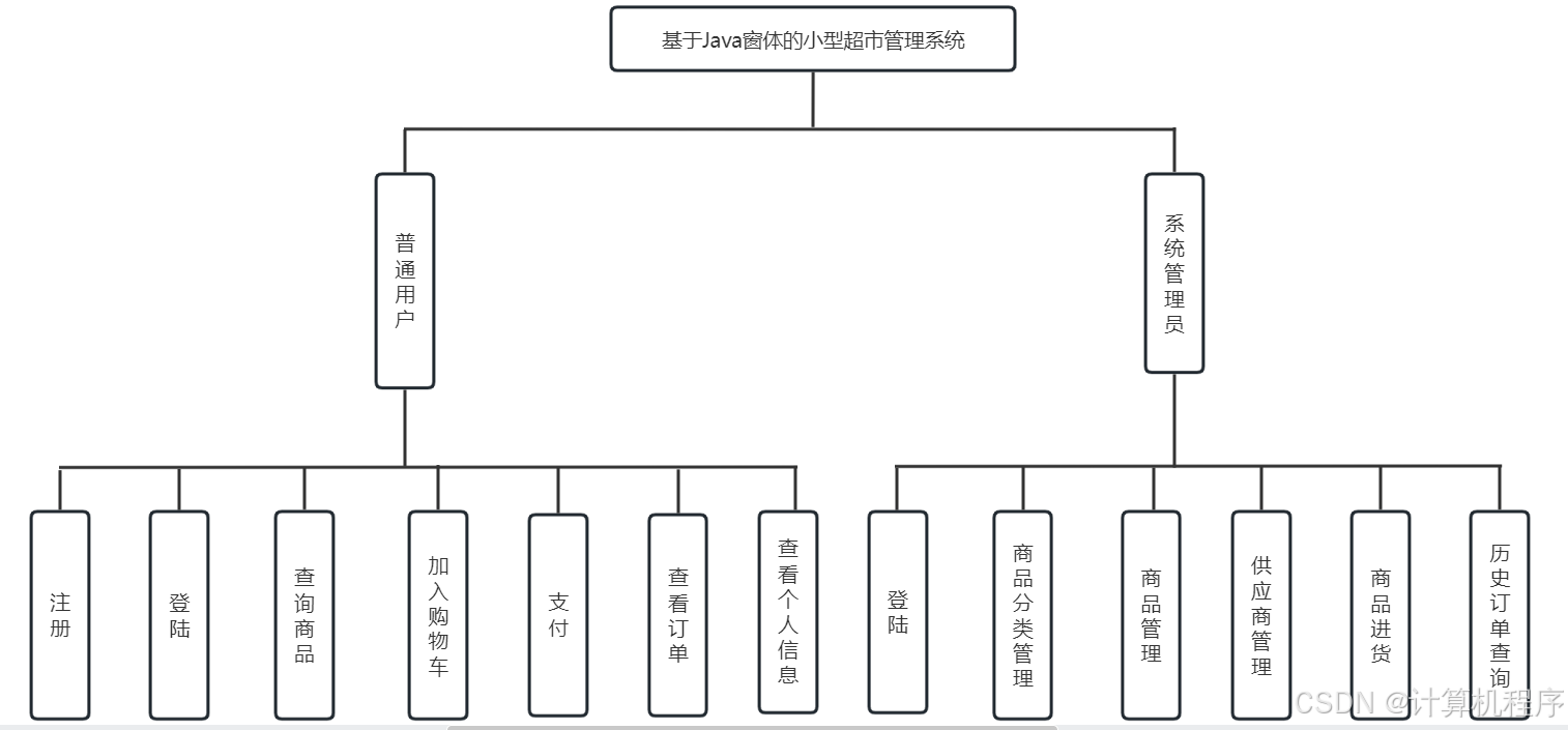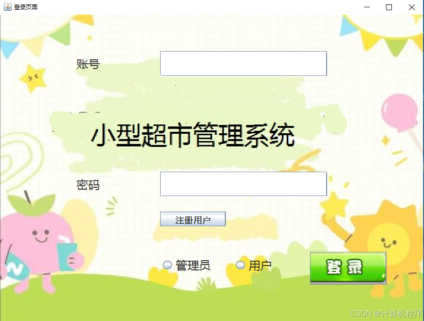 前段时间各种各样的事情太忙,优快云博客停止有很长一段时间了。今天为大家分享一个JAVA窗体版本的小型超市管理系统489.目前基于Swing的窗体程序使用越来越少。但是通过窗体程序涉及到的技术在各种应用程序中都有广泛的应用。本次介绍的小型超市管理系统涉及到数据库技术、UI技术、多线程技术等,是一个实战性很强的项目。本次介绍的小型超市管理系统分普通用户和系统管理员两种用户类型。普通用户的功能包括:查询商品、加入购物车、购买、支付、查看订单、查看个人信息。系统管理员的功能包括:登录、商品分类管理、商品管理、供应商管理、销售历史订单查询、用户管理、系统进货等功能。整个项目有完整得源码,希望大家可以喜欢。通过实战项目,喜欢上编程,提高编程水平,一起加油!
