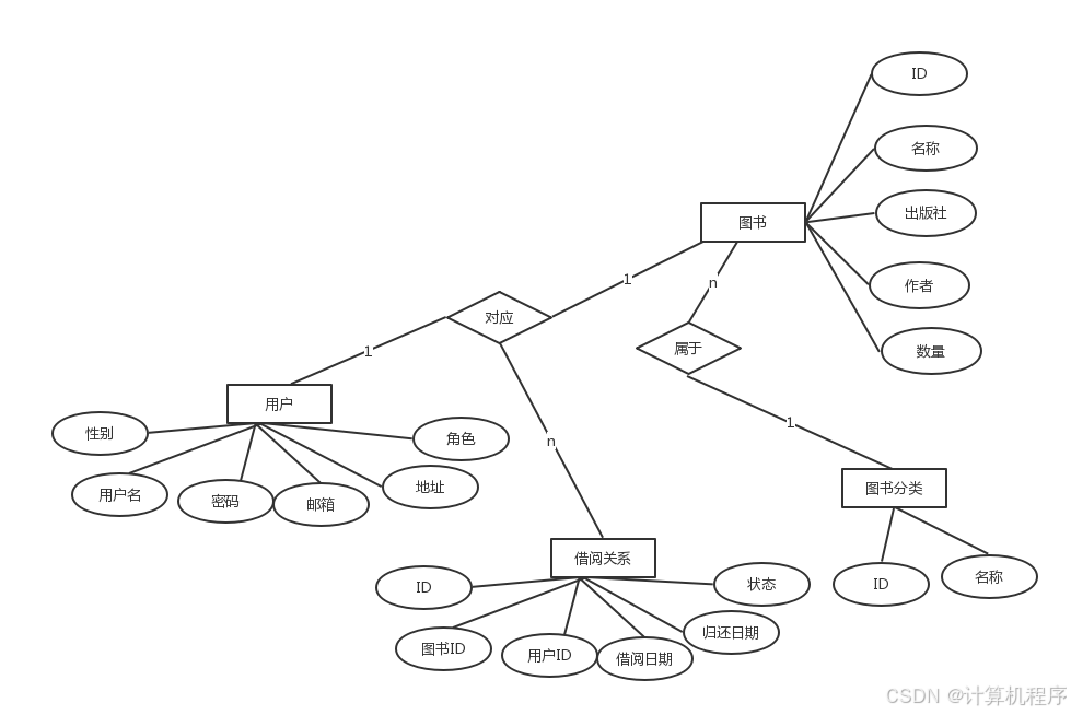 系统种存在4个表:用户表、图书分类表、图书表、借阅表.整个系统的E-R图如下: