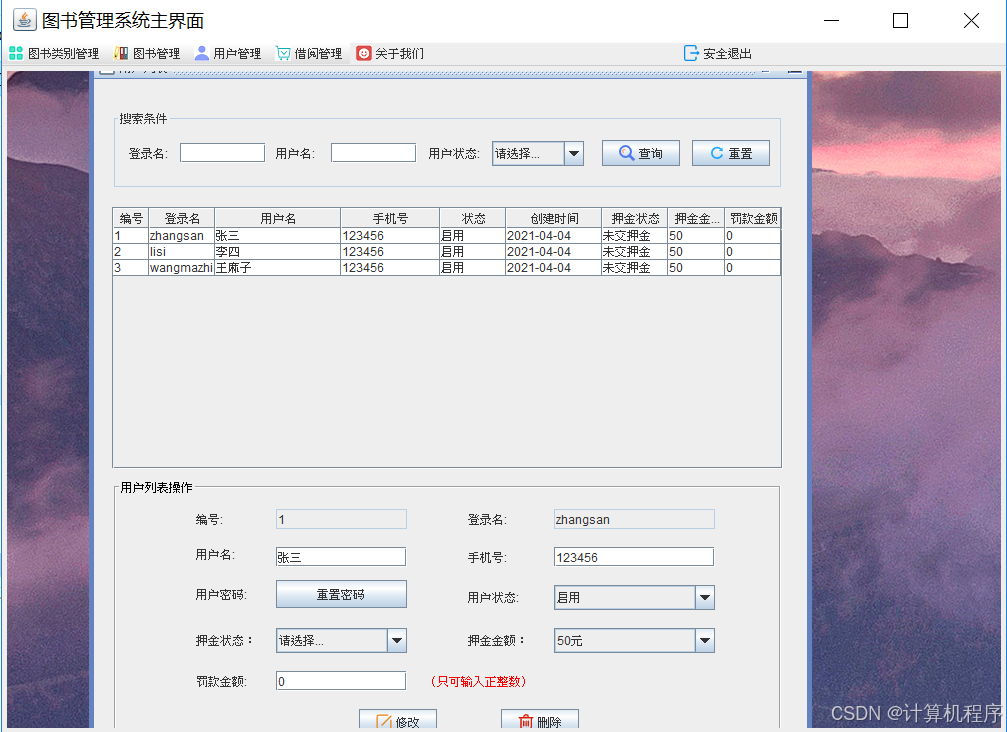 利用JDK自带的SWING框架开发,不需要安装第三方JAR包。MySQL数据库,纯窗体模式,直接运行Main文件即可以。属于入门级的程序。