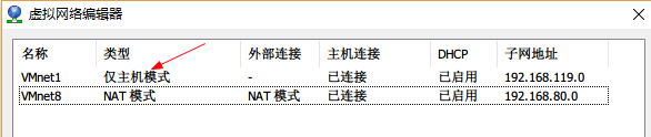 安装好虚拟机以后,系统会新增两个虚拟网卡。其中VMnet1网卡连接到Host-only模式的网络,VMnet8网卡连接到NAT模式的网络。