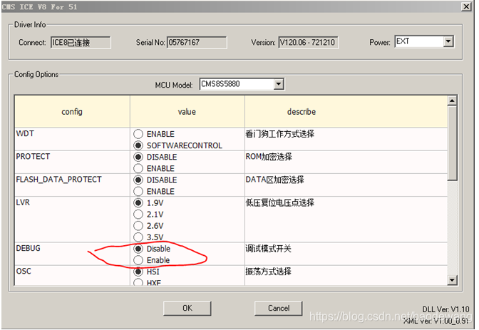 另外低功耗模式也要disable调试模块才能做到低功耗。