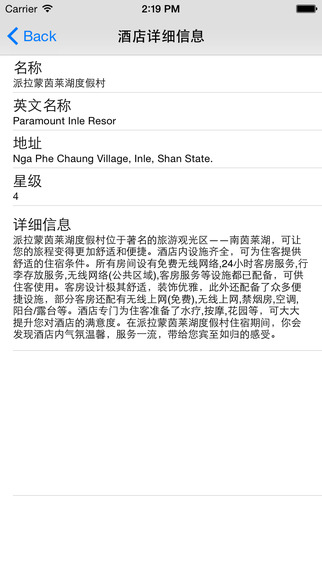 茵莱湖中文离线地图是一款支持中文地名和酒店标注的地图。所有数据全部打包在应用中,在离线环境在完全可用,是去茵莱湖旅游的必备工具。 主要特征包括: 1 地图数据完全离线 2 酒店全部中文标注,并提供酒店详细描述 3 景点、购物、美食、活动等重要地点中文标注 4 支持酒店查询,快速在地图上定位 5 支持景点、购物、美食、活动等信息在地图上的展示,并提供列表视图快速浏览 系统截图: