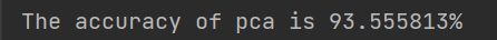 print("The accuracy of pca is {0:1f}%".format(score.mean()*100))