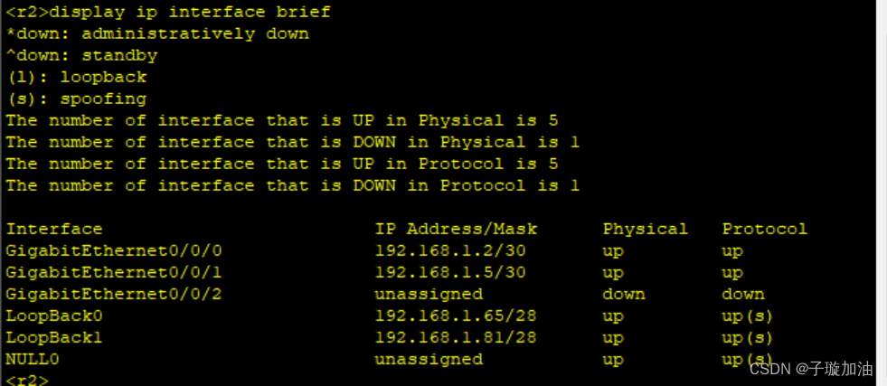 [r2-GigabitEthernet0/0/1]ip add 192.168.1.5 30