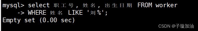 7、列出所有姓刘的职工的职工号、姓名和出生日期。
