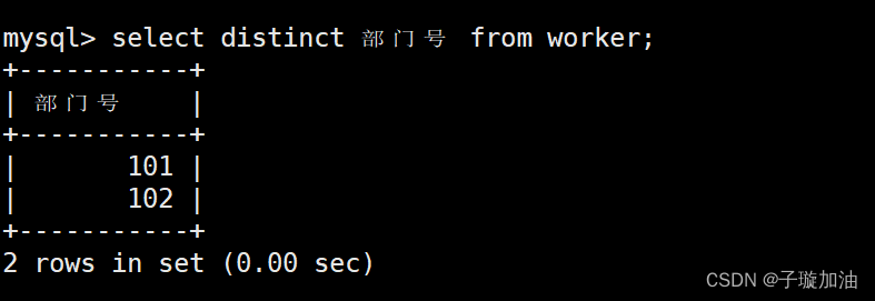 2、查询所有职工所属部门的部门号,不显示重复的部门号。