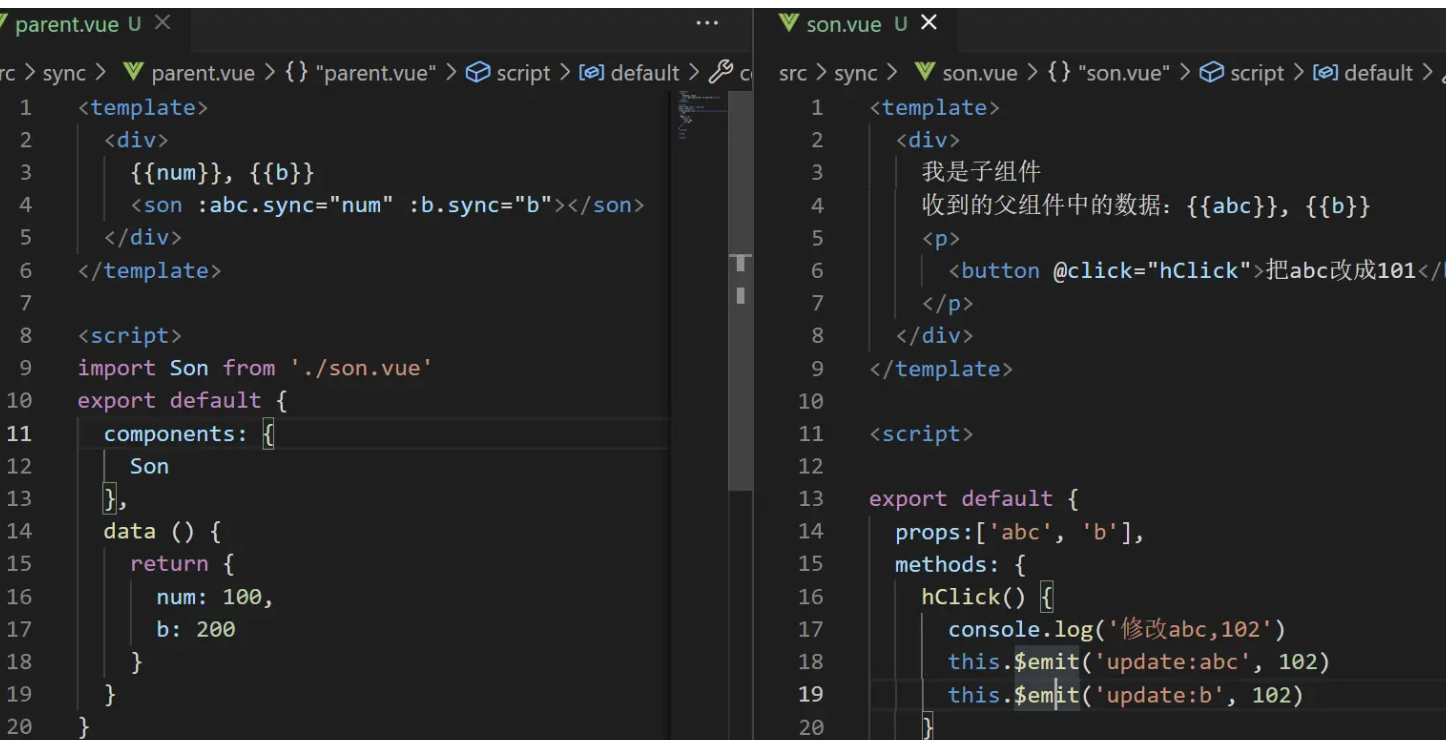 prop传递的,子组件传递数据给父组件是通过$emit触发事件来做到的