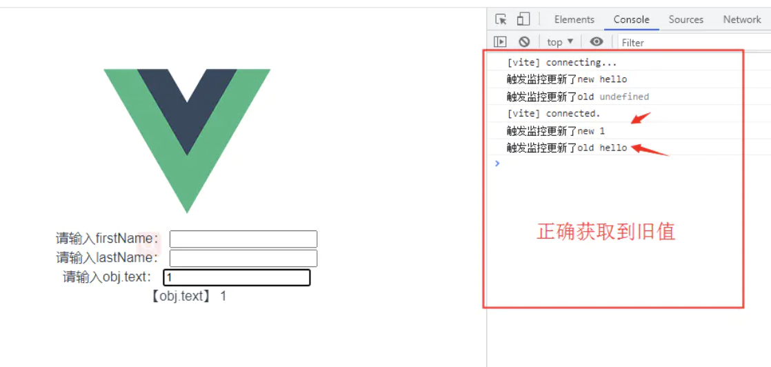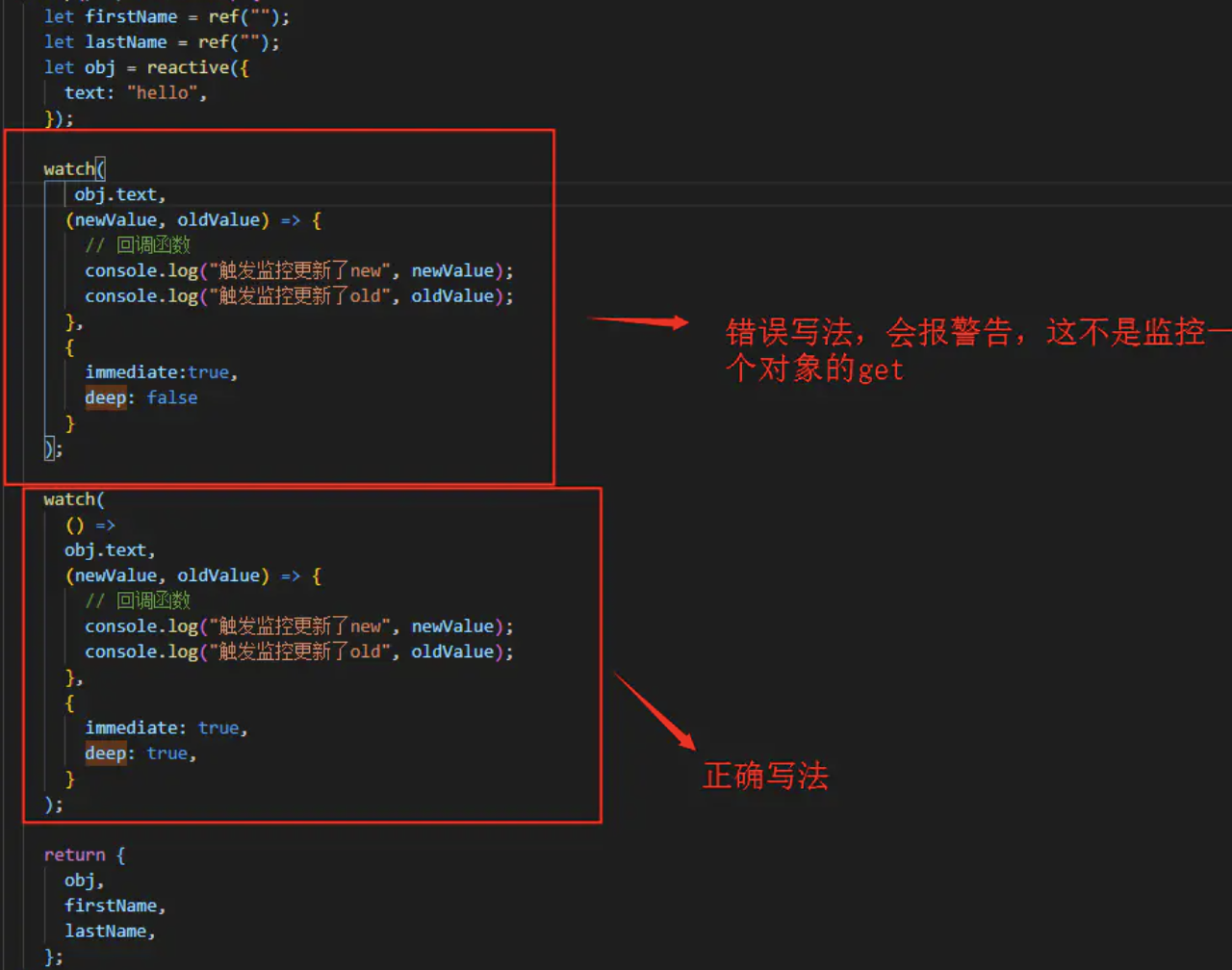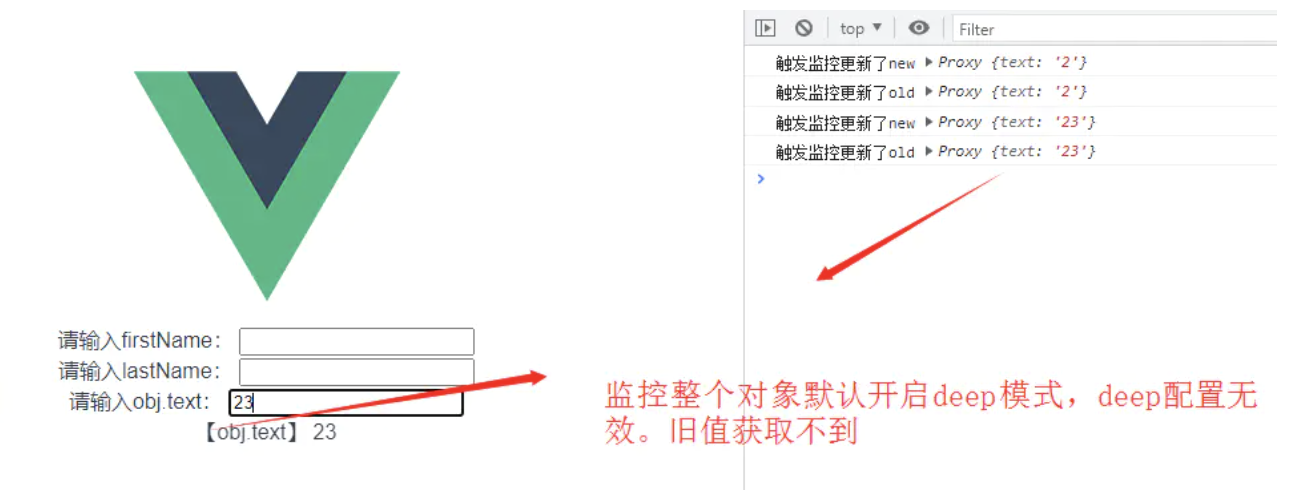 - 监听的函数接收两个参数,第一个参数是最新的值,第二个是变化之前的值