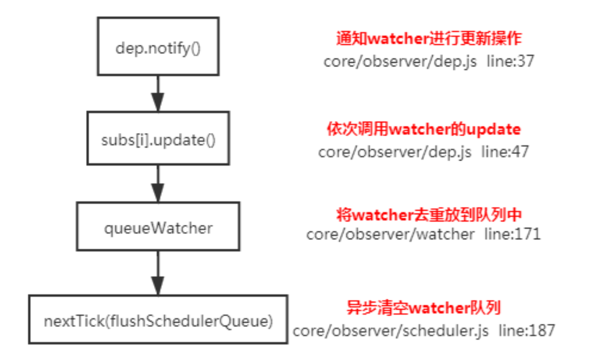 // 修改肯定是同步的 -> 更新都是一步的 queuewatcher