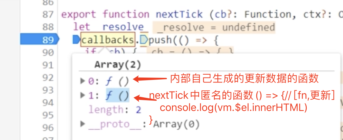 对象内部通过 defineReactive 方法,使用 Object.defineProperty 来劫持各个属性的 setter、getter(只会劫持已经存在的属性),数组则是通过重写数组7个方法来实现。当页面使用对应属性时,每个属性都拥有自己的 dep 属性,存放他所依赖的 watcher(依赖收集),当属性变化后会通知自己对应的 watcher 去更新(派发更新)