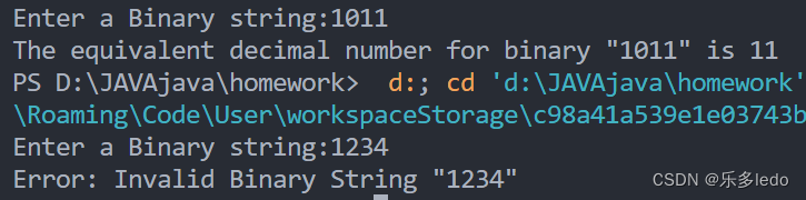 本文介绍了一个Java程序,用于从控制台接收用户输入的二进制字符串,然后将其转换为等效的十进制数。程序会检查输入的有效性,并处理无效的二进制字符串。
