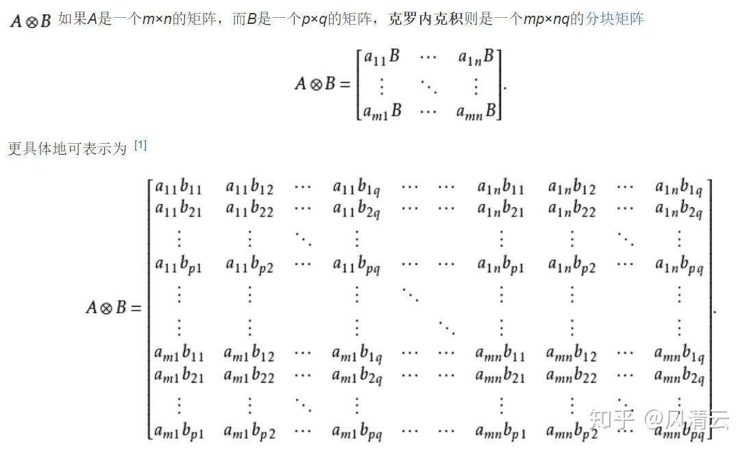 克罗内克积的定义和性质都比较简单,这里从百度百科直接摘出: