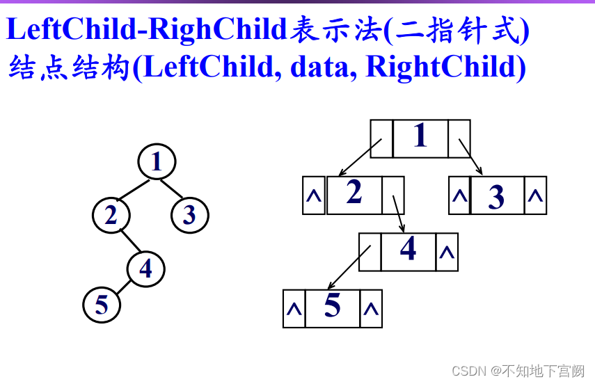 二指针式每个结点两个指针分别指向左儿子和右儿子。