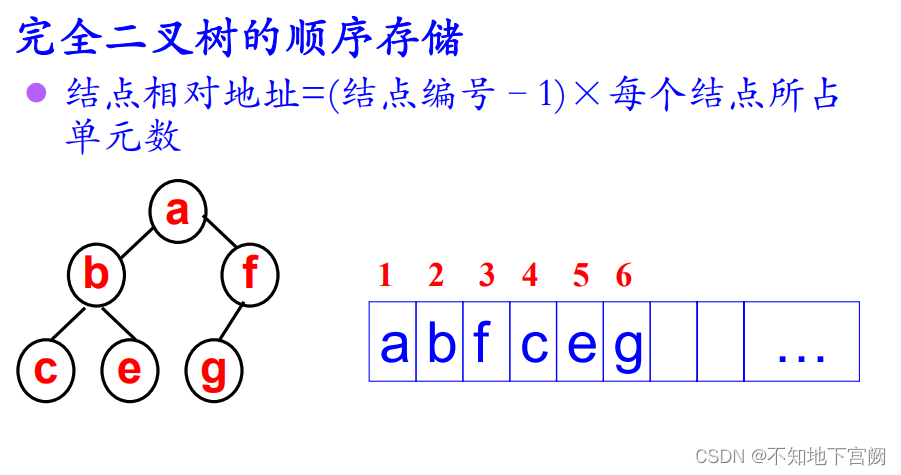 性质4:如果一棵有n个结点的完全二叉树的结点,按层次序编号(每层从左至右), 则对任意结点i(1≤i≤n):