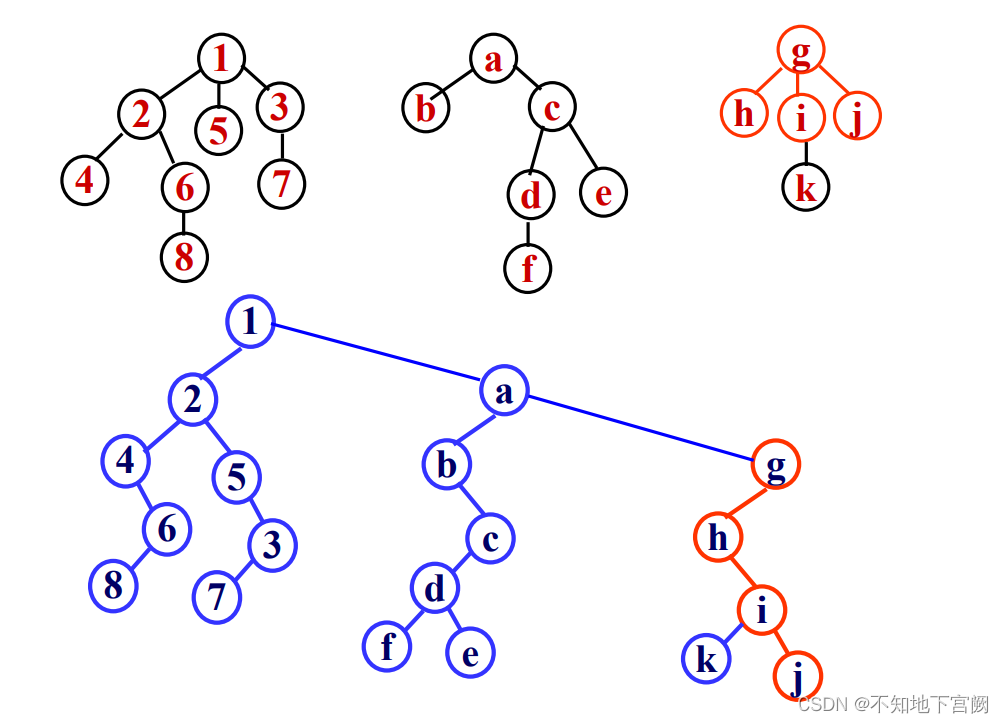 树->二叉树:我的右边的兄弟会变成我的右儿子,我的大儿子永远是我的好大儿
