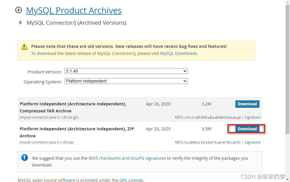 step 1: 下载mysql-connector-java-5.1.49