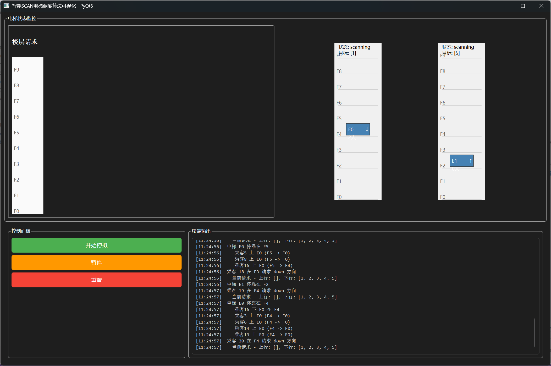 为了保证跨平台兼容性,我采用pyqt6作为前端框架,整体采用MVC模式,调度算法作为模型,QT用于可视化,然后将信息与可视化进行连接。