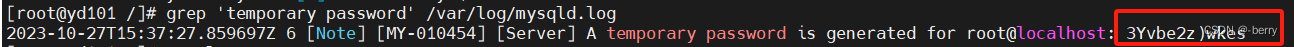 grep 'temporary password' /var/log/mysqld.log